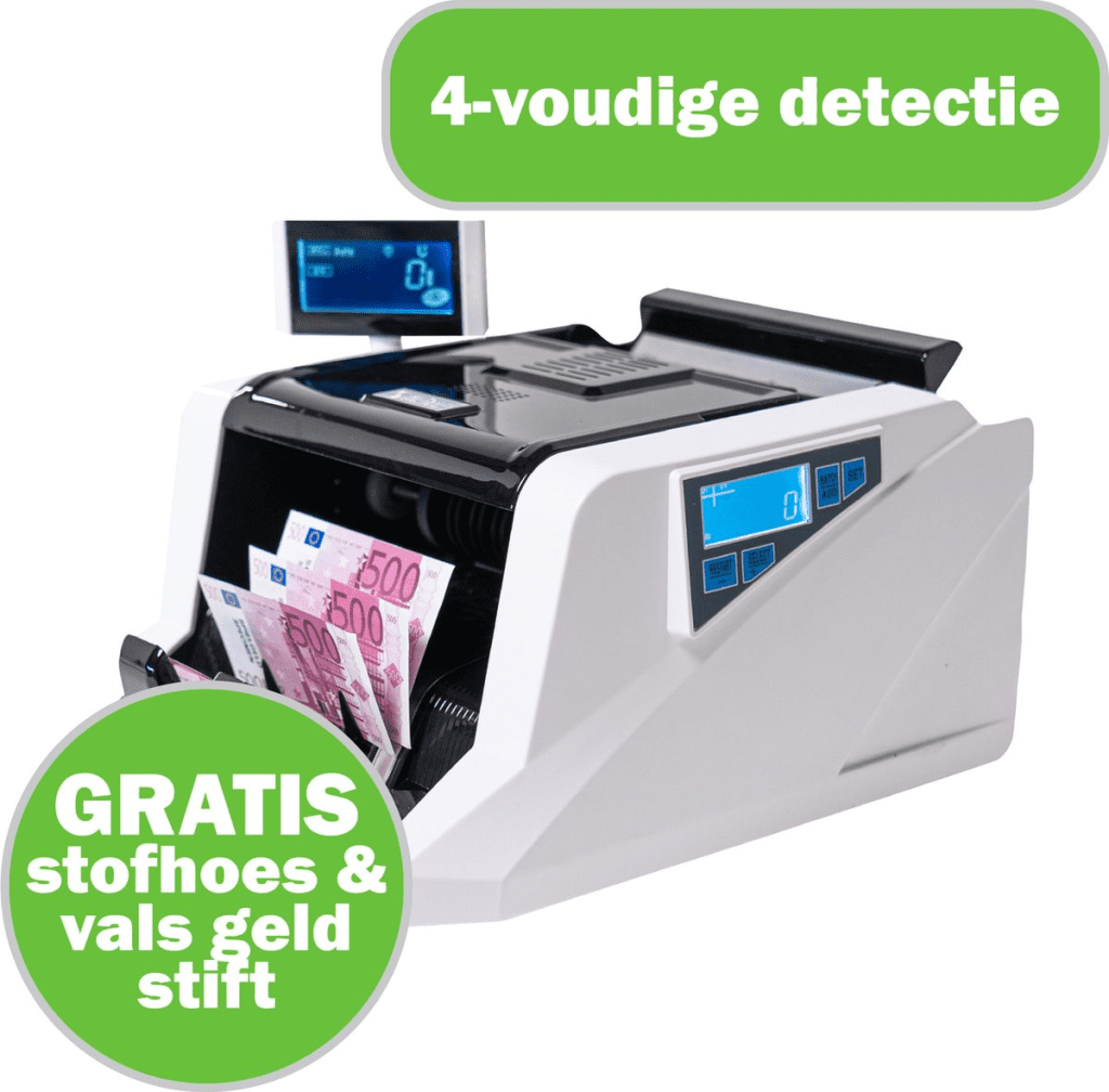Agellic® – Geldtelmachine – Biljettelmachine – 4-voudige vals geld detectie – 1000 biljetten per minuut – Geldteller – Incl. Stofhoes en Vals geld stift – Valsgelddetector