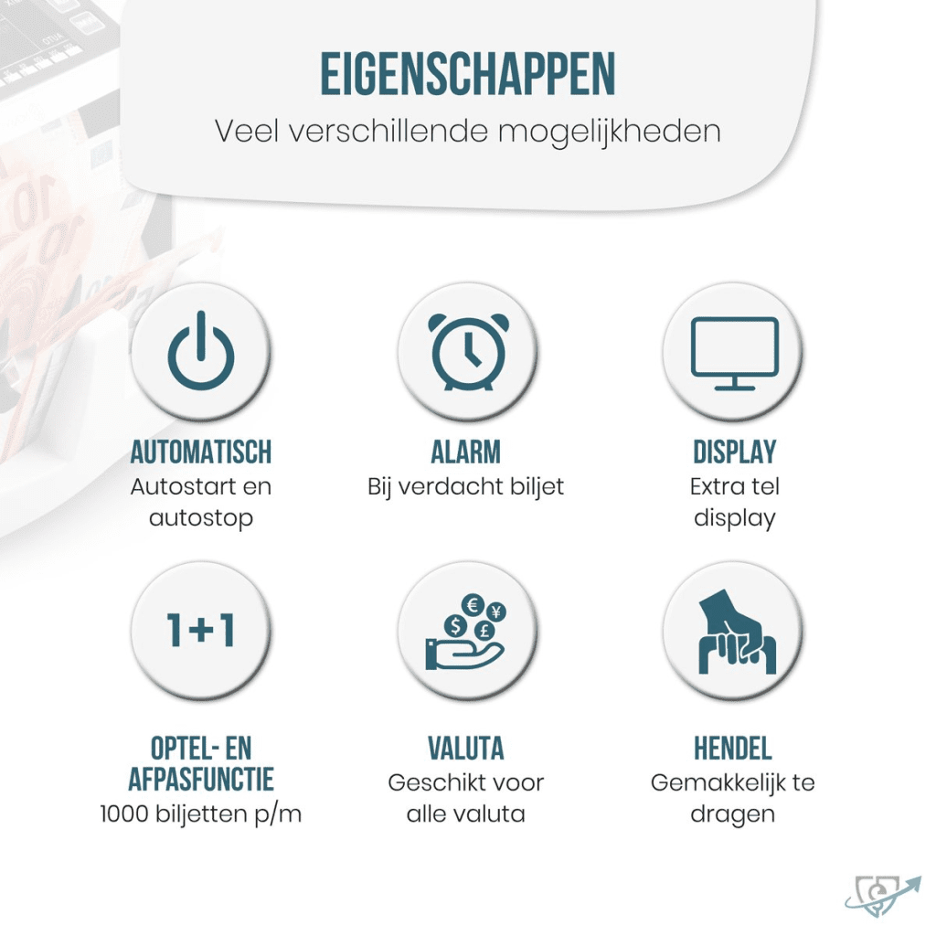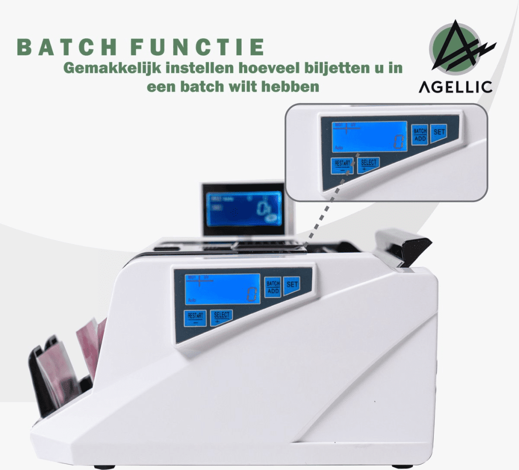 - Agellic® – Geldtelmachine – Biljettelmachine – 4-voudige vals geld detectie – 1000 biljetten per minuut – Geldteller – Incl. Stofhoes en Vals geld stift – Valsgelddetector