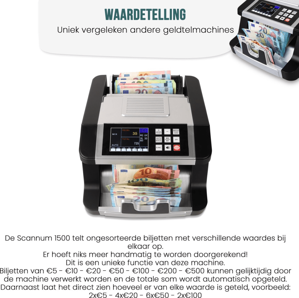 SCANNUM® – Biljettelmachine – 5-voudig Valsgelddetectie – Waardetelling – Biljetten – Geldteller – Geldtelmachine – Valsgelddetector – Geld Teller