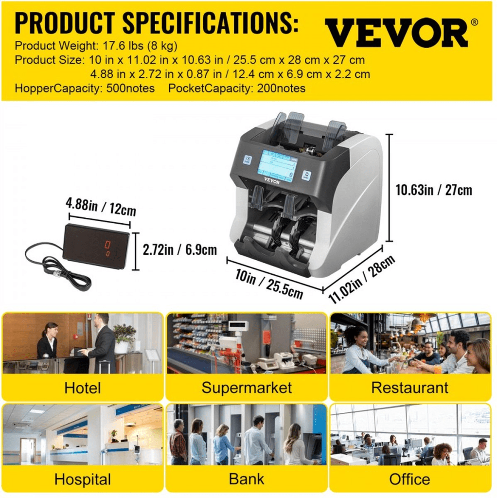 Brede Toepassing: De ideale rekeningenteller werkt voor de zware sorteerklussen. Het is perfect voor elk bedrijf, zoals banken, benzinestations, politiediensten, restaurants, schooldistricten, groothandels en ziekenhuizen.